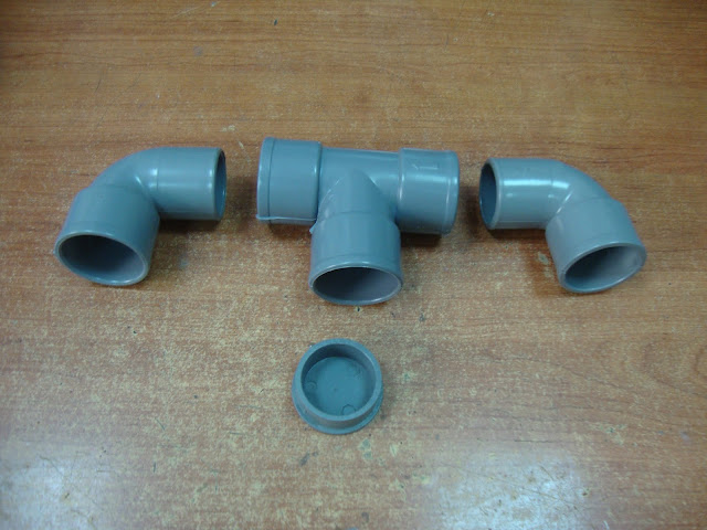Vamos a cumplir con ambos requerimientos poniendo un conjunto de cuatro piezas de PVC sobre la tapa. Todas son de 40 mm de diámetro: