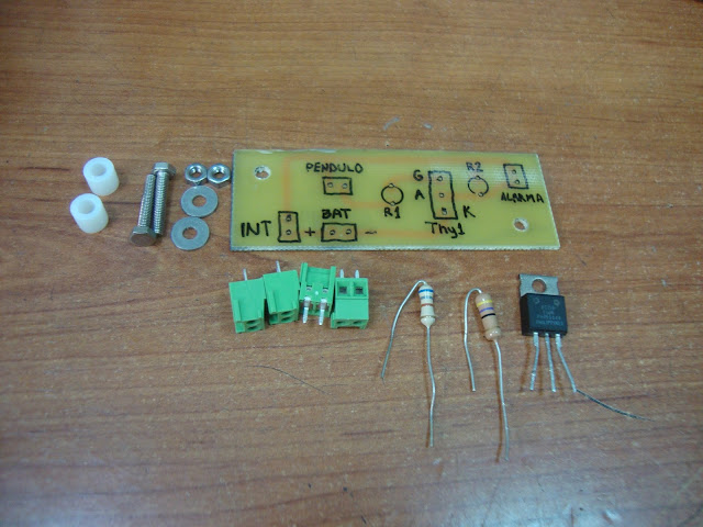 - Tornillería: Varios tornillos rosca metal M3 con arandelas y tuercas para sujetar alarma, circuito, péndulo...