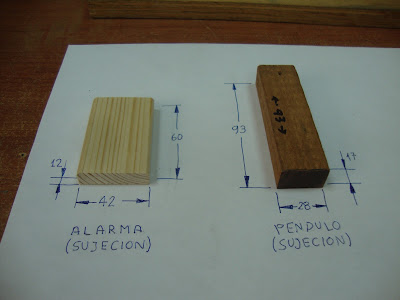 | [Fig 4] Maderas para sujetar alarma (izq) y sujetar péndulo (der) |